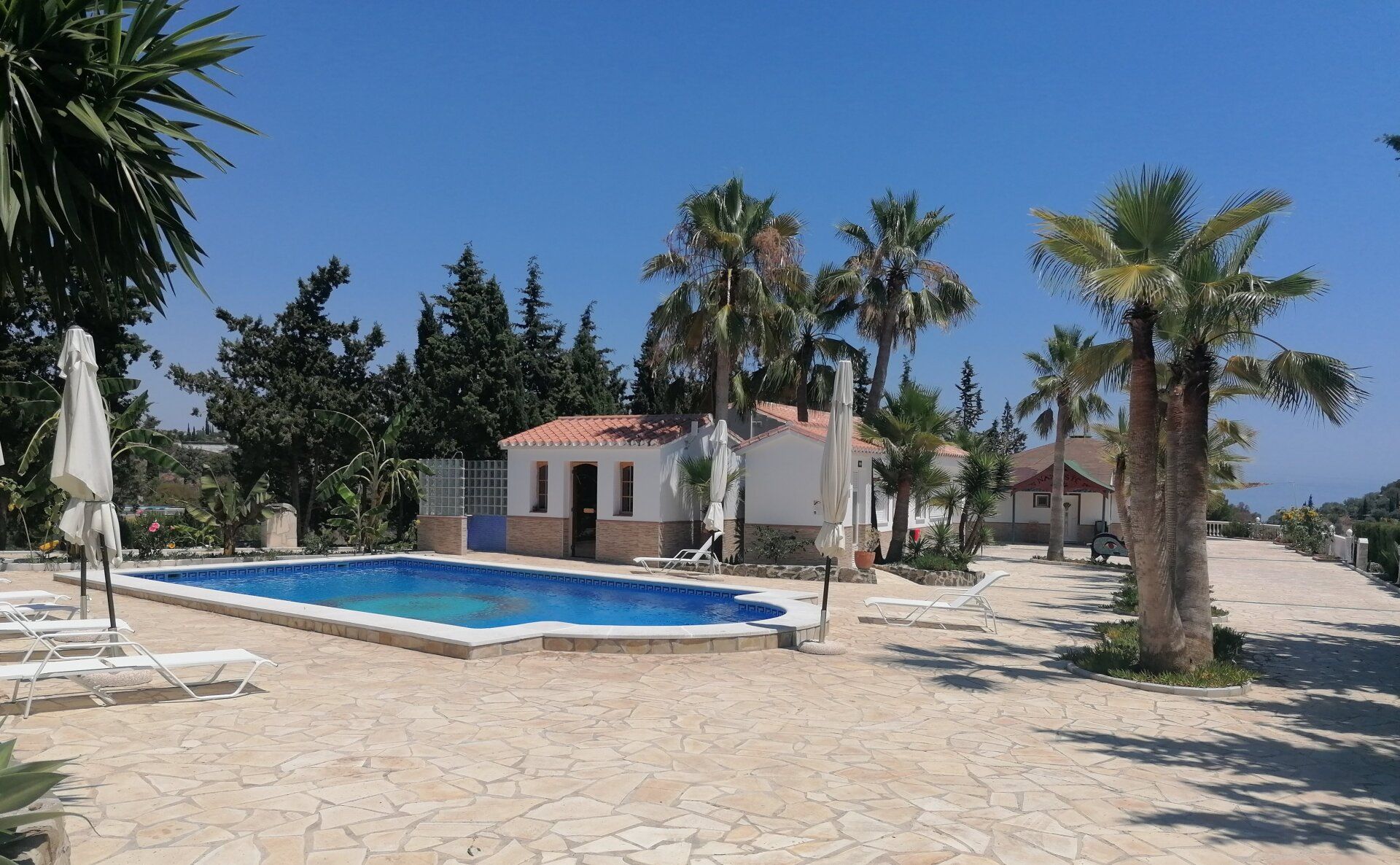 20 km östlich von Málaga, etwa 1 km vom Meer entfernt, liegt die Finca in einem zum Meer hin offenen Tal, inmitten einer reizvollen Hügellandschaft voller üppiger Obstkulturen mit Avocados, Feigen, Bananen und Mangos. Ein Ort der Ruhe, Anregung und Lebenslust, in dem großblütiger Hibiskus und farbenprächtige Bougainville die Sinne stimulieren.
